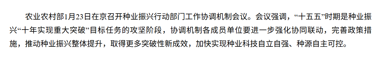 農(nóng)業(yè)農(nóng)村部:“十五五”時(shí)期是種業(yè)振興“十年實(shí)現(xiàn)重大突破”目標(biāo)任務(wù)的攻堅(jiān)階段